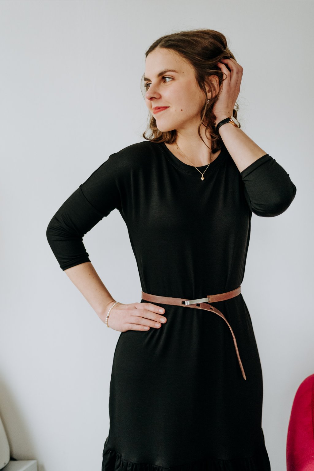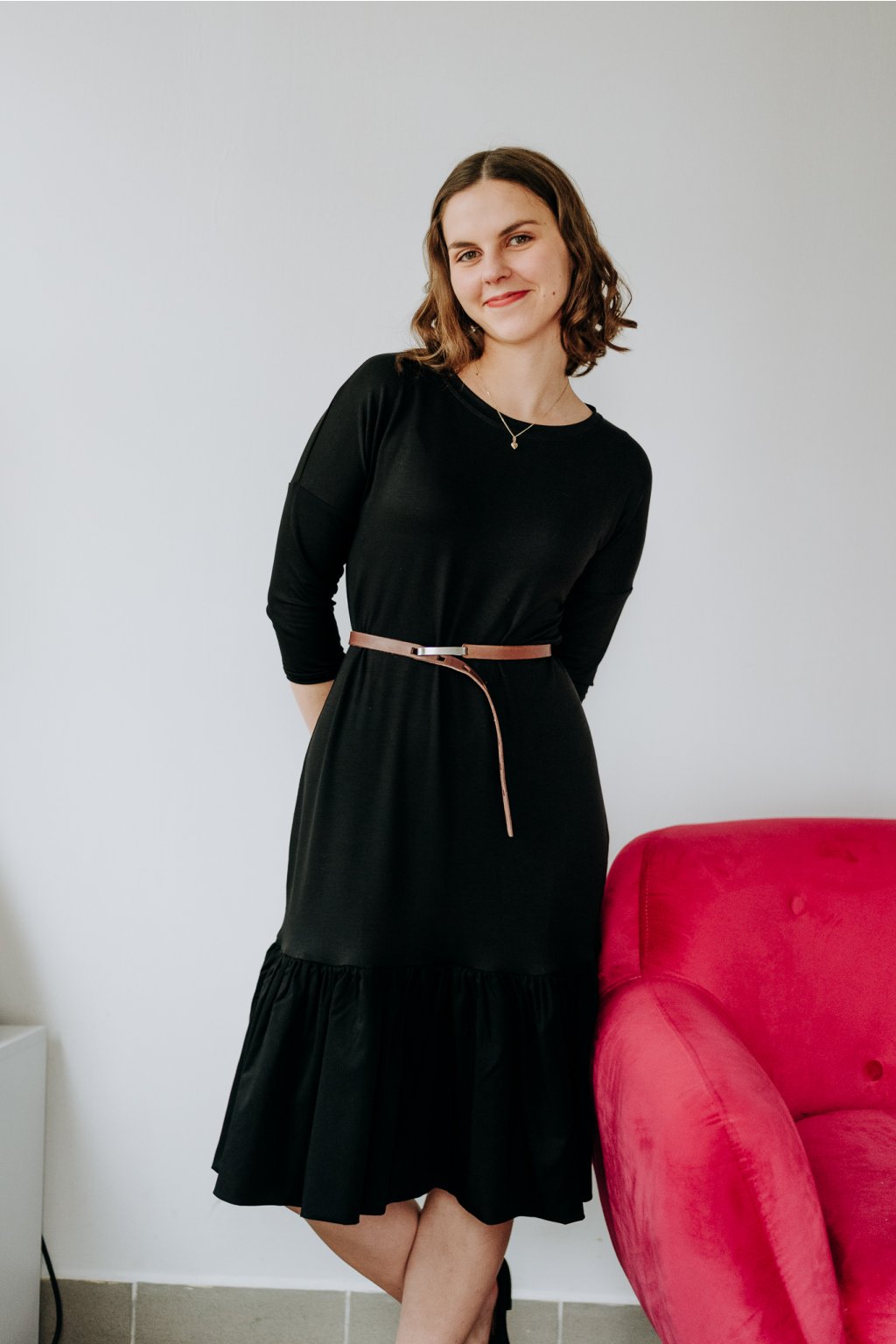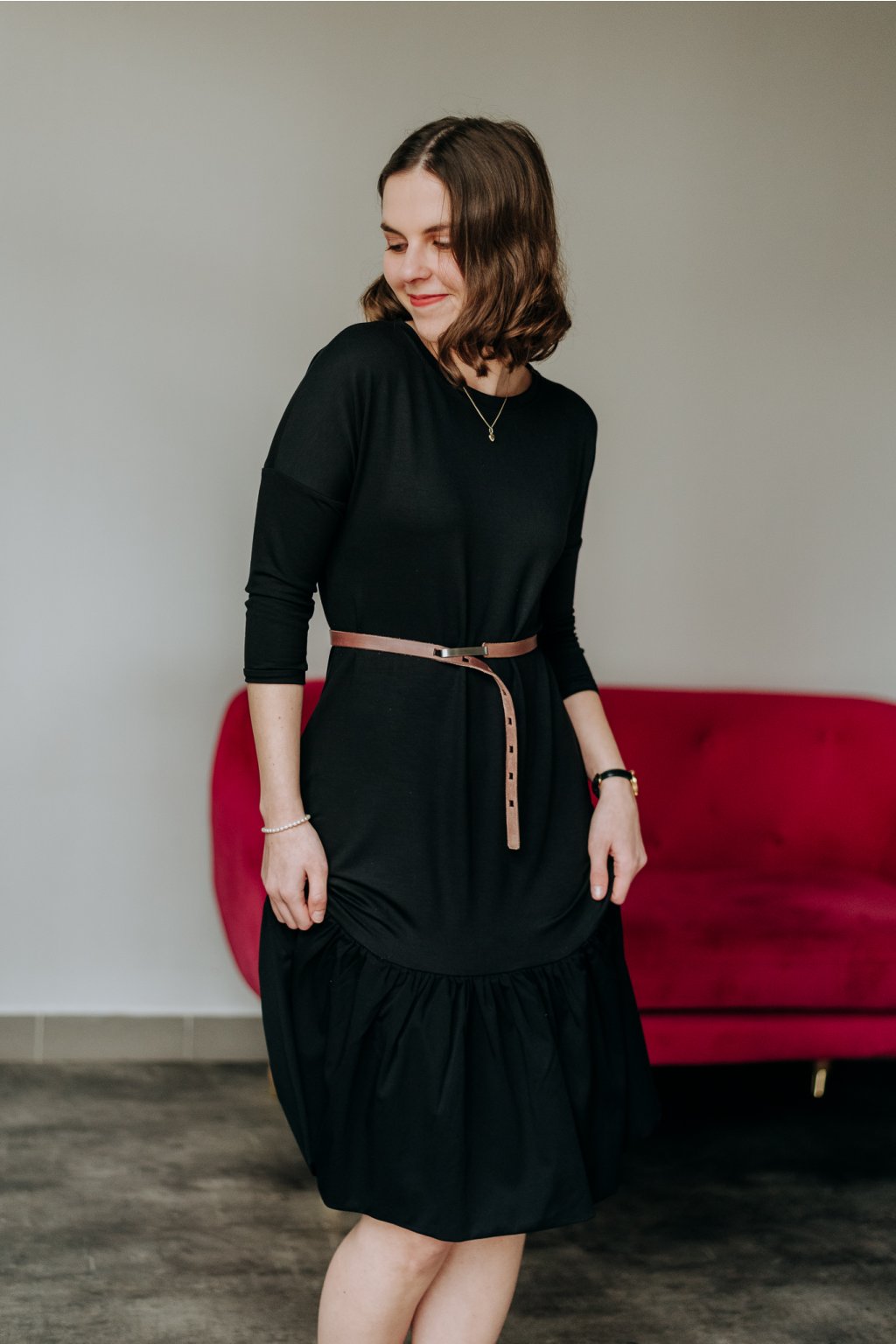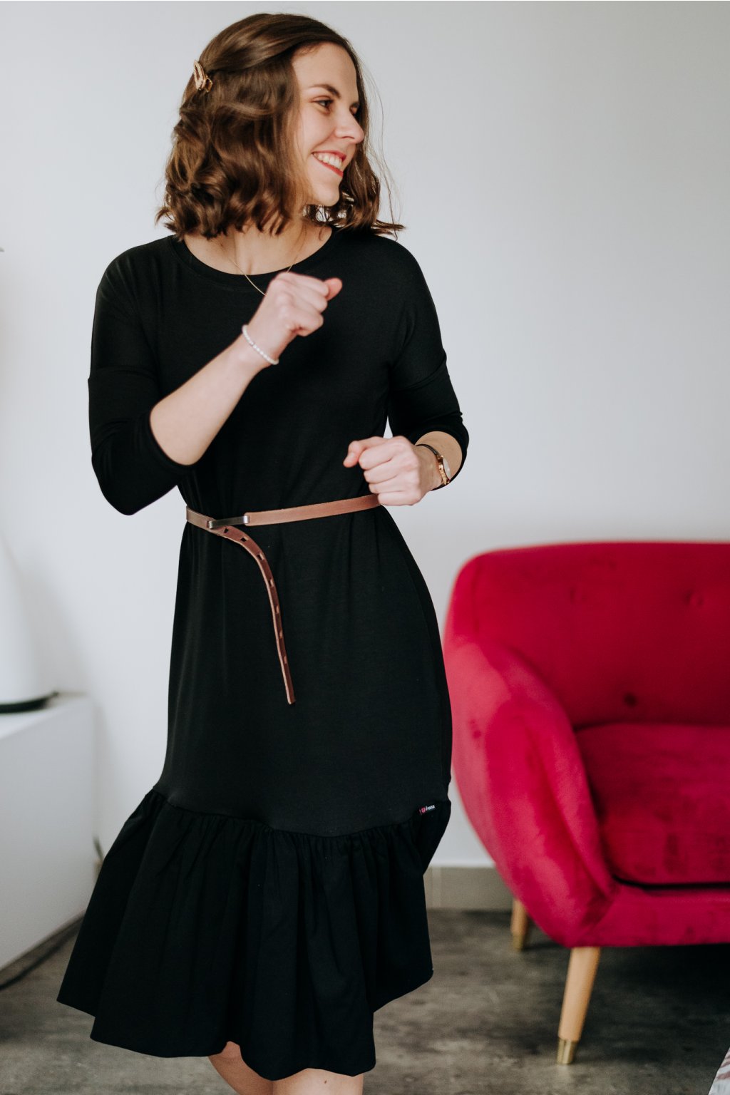 Úpletové šaty, které jsou střižené tak, že kopíruji linii vašeho těla. Zadní díl je vykrojený v oblasti bederní páteře a tím zdůrazňují vaše křivky. Šaty jsou vyrobené ze dvou druhu látek. Horní část je vyrobena s nepočesané viskózy s podílem elastanu a dolní balónová část je z tkaninové viskózy. Díky kombinaci materiálů získávají šaty Ariel i elegantní nádech. Můžete je tady mít nejen na pohodu k teniskám, ale i na romantickou večeři. Můžete je doplnit i páskem. Ten není součásti modelu. Můžete si ho u nás taky pořídit. Stačí si o něj napsat, nebo vložit do košíku.