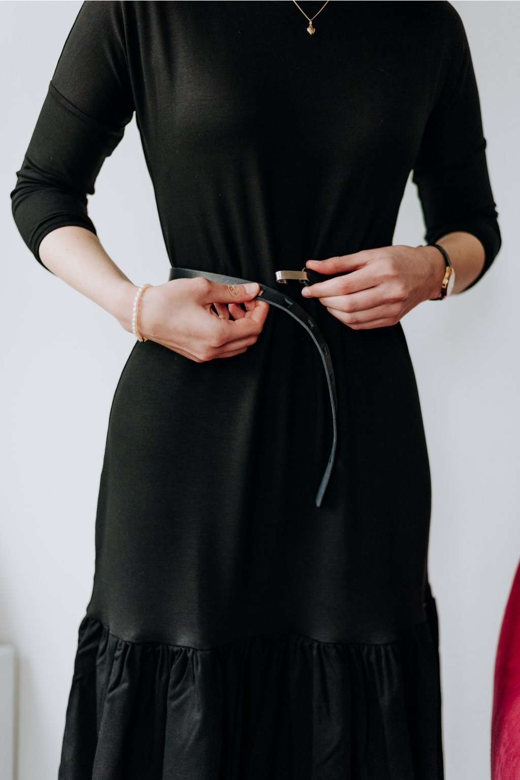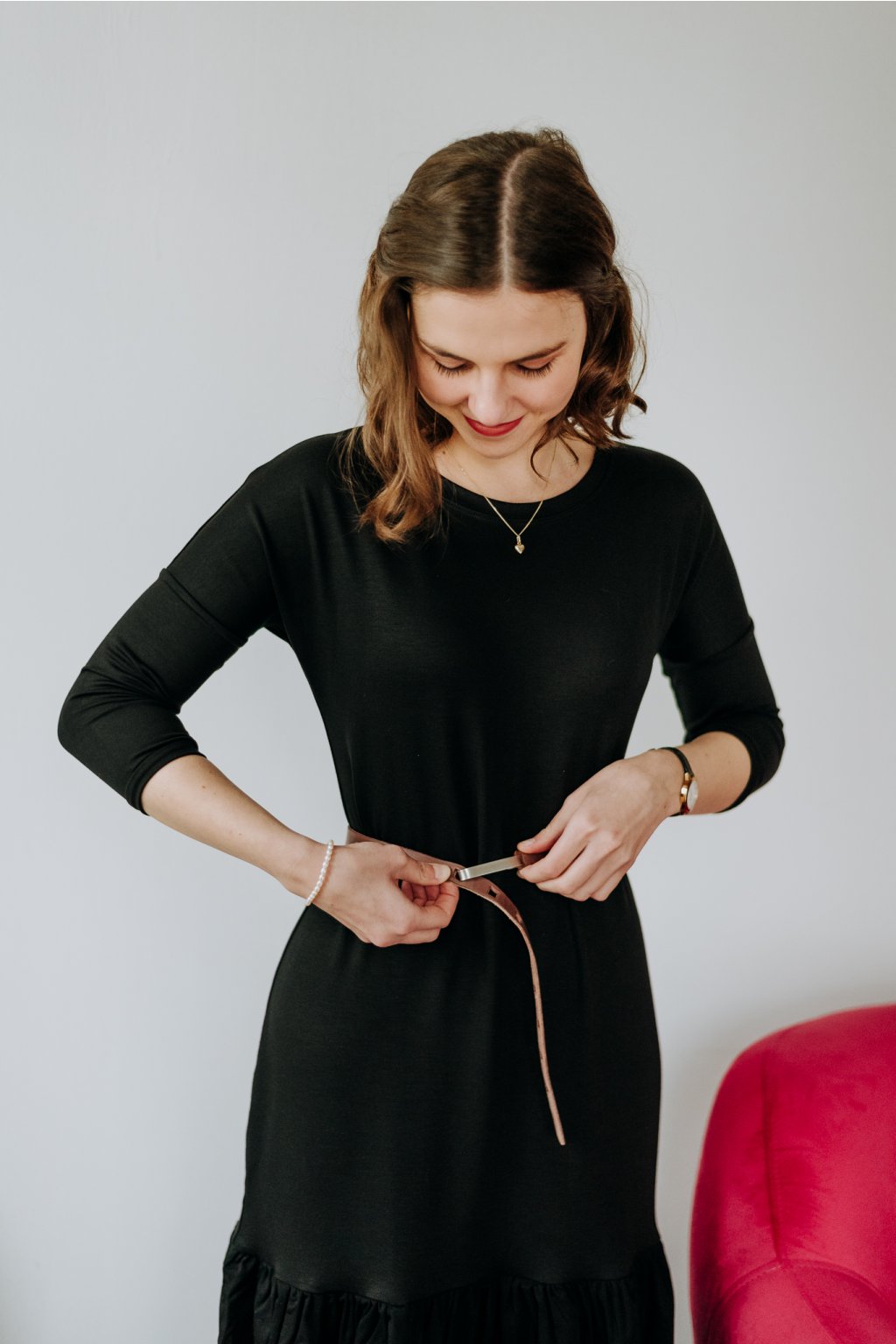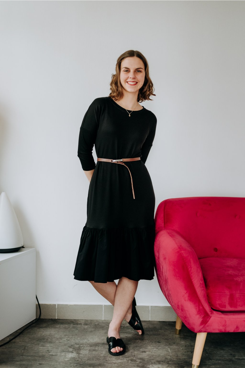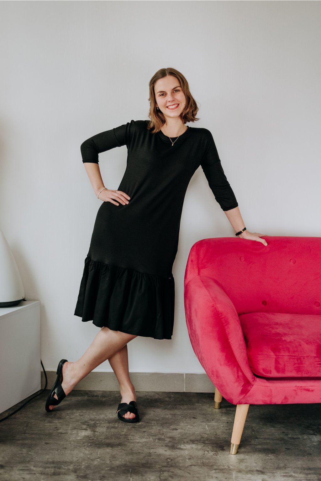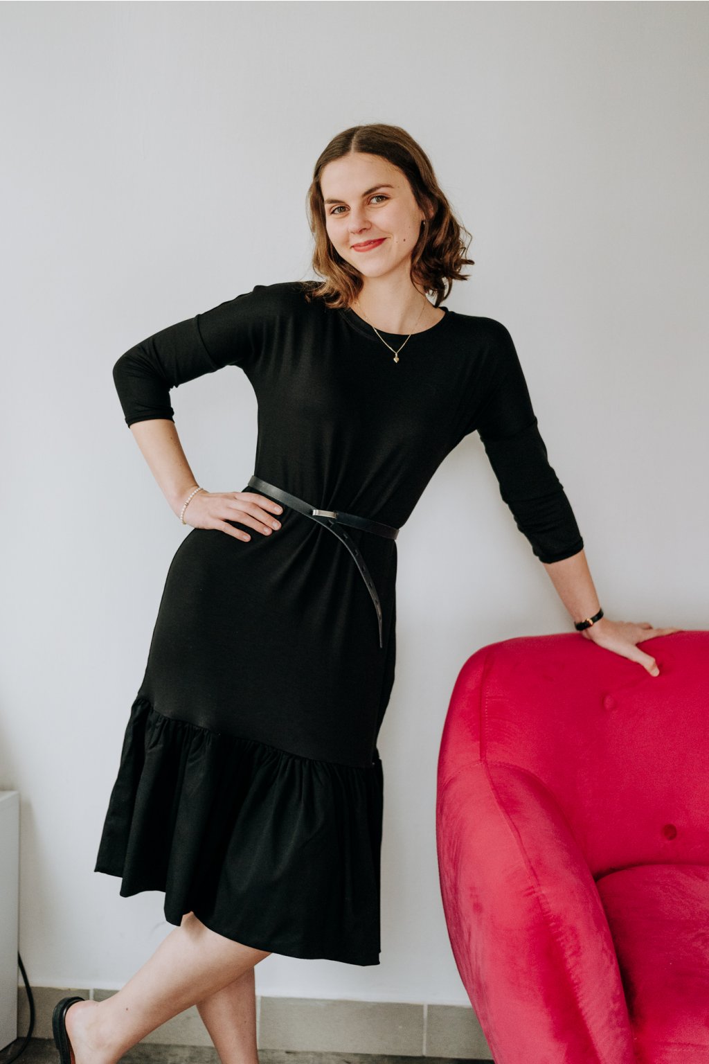 Úpletové šaty, které jsou střižené tak, že kopíruji linii vašeho těla. Zadní díl je vykrojený v oblasti bederní páteře a tím zdůrazňují vaše křivky. Šaty jsou vyrobené ze dvou druhu látek. Horní část je vyrobena s nepočesané viskózy s podílem elastanu a dolní balónová část je z tkaninové viskózy. Díky kombinaci materiálů získávají šaty Ariel i elegantní nádech. Můžete je tady mít nejen na pohodu k teniskám, ale i na romantickou večeři. Můžete je doplnit i páskem. Ten není součásti modelu. Můžete si ho u nás taky pořídit. Stačí si o něj napsat, nebo vložit do košíku.