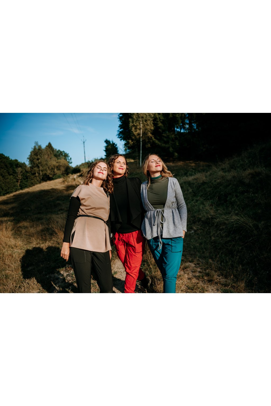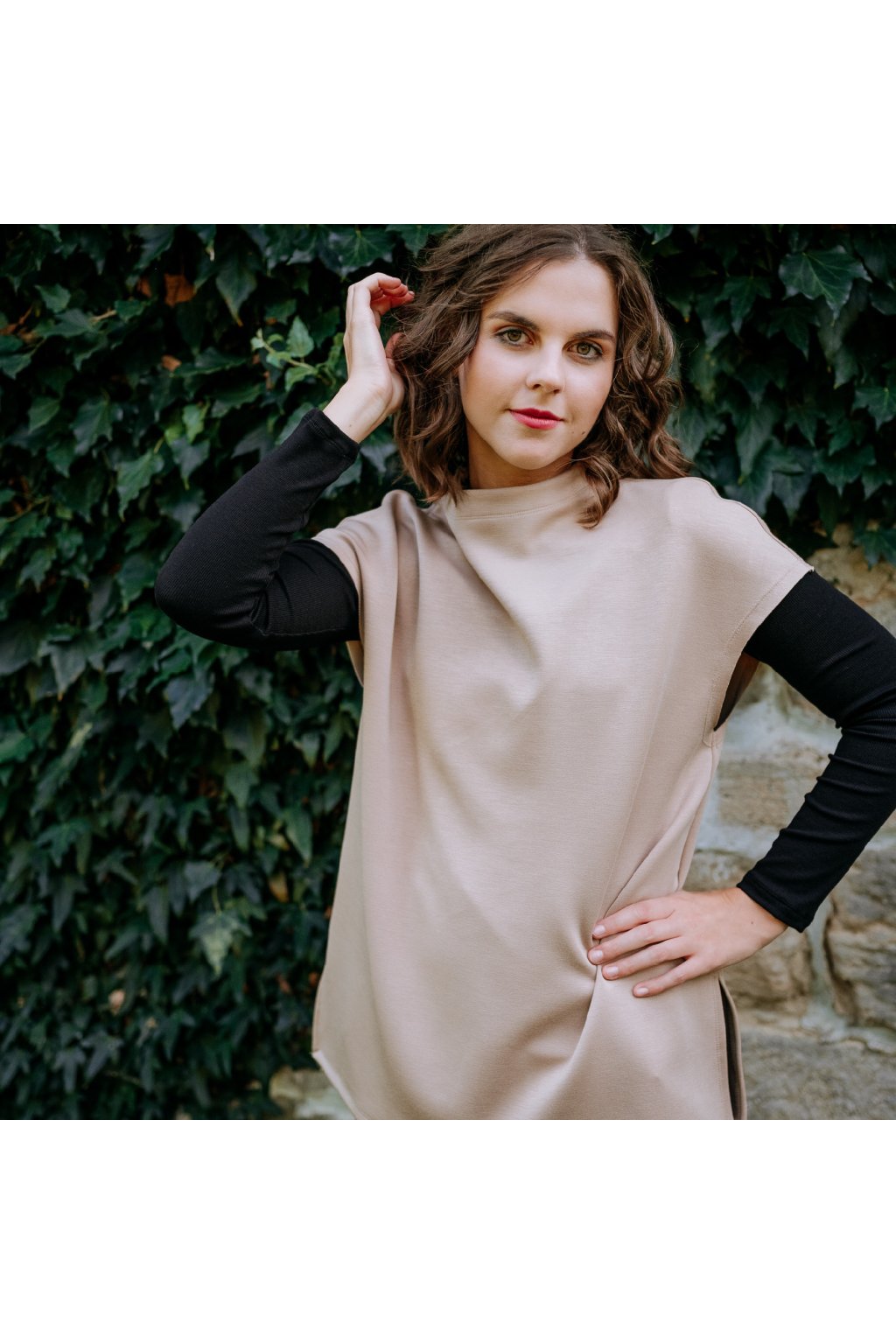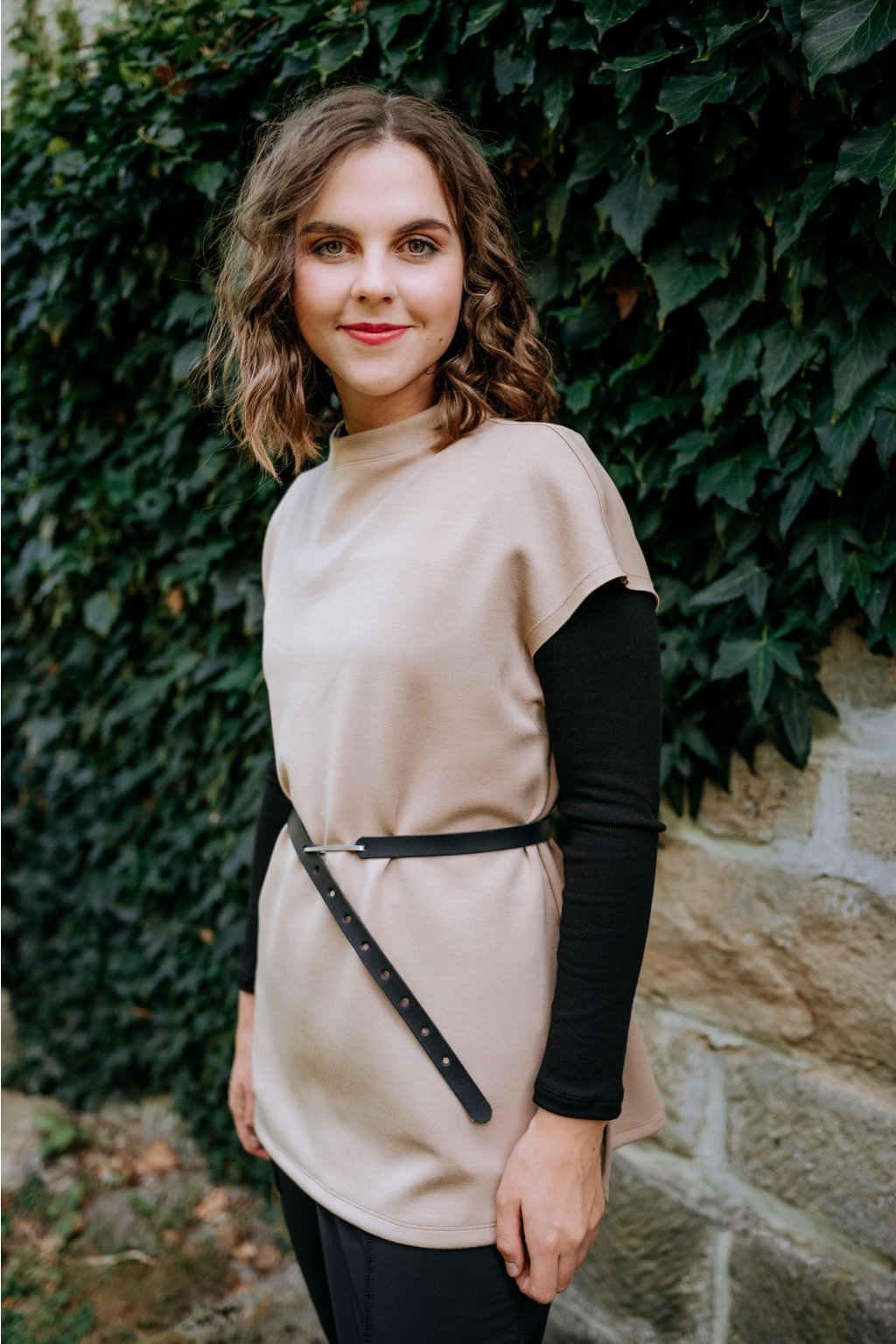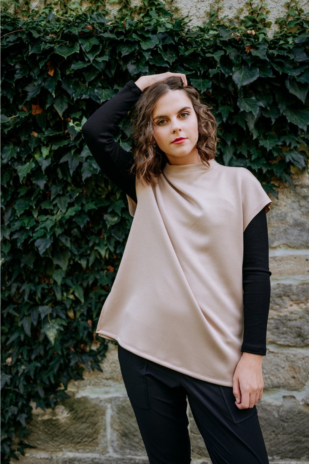 Fotografie na postavě jsou s vestou Corine z materiálu modal, bavlna, elastan