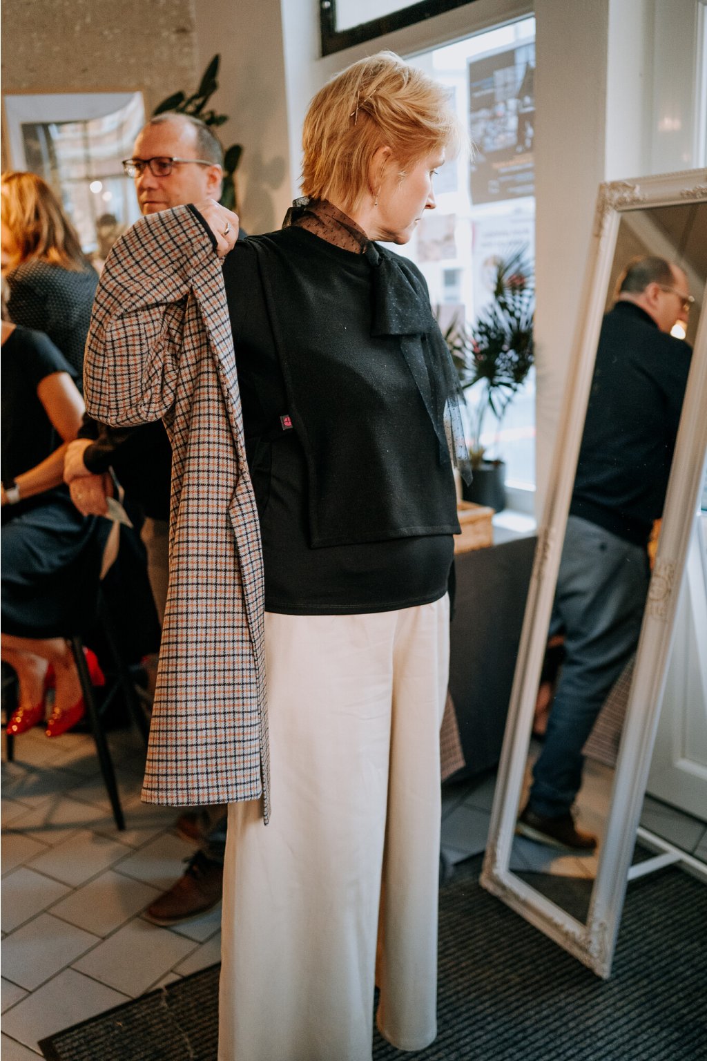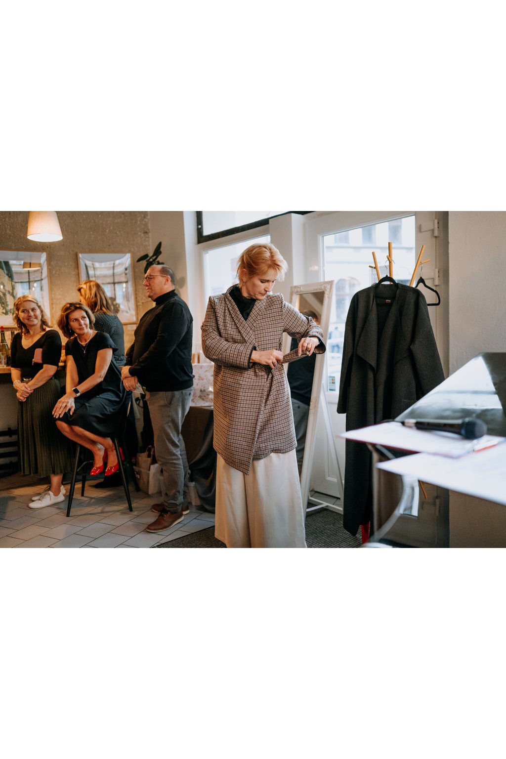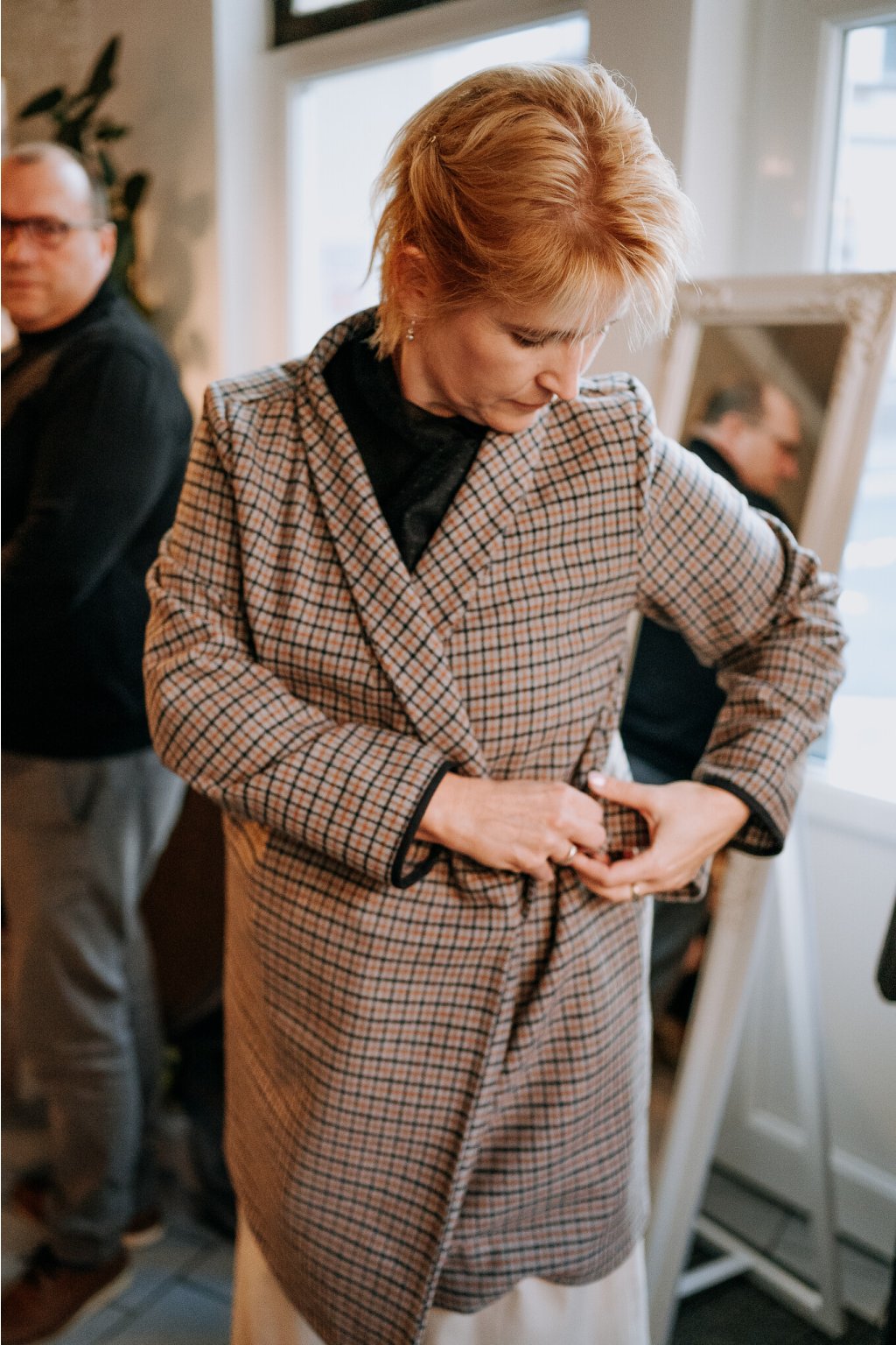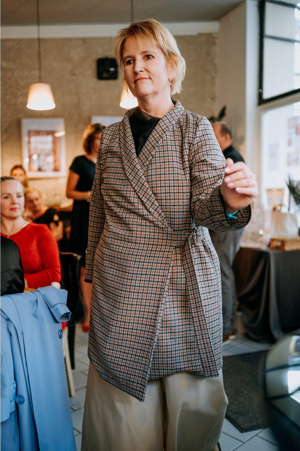 Vlněný kostkovaný kabát.