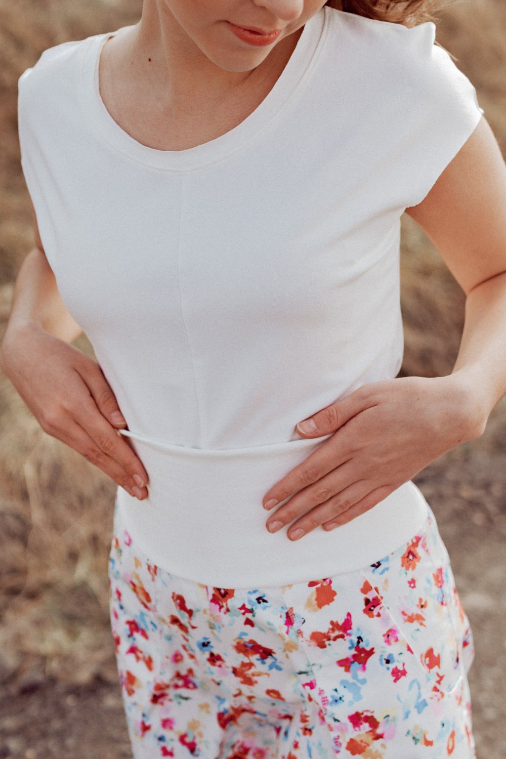 Úpletový pás neškrtí a je velmi šetrný k Vašim vnitřním orgánům. Naše oblečení myslí na to, abyste se cítily komfortně.