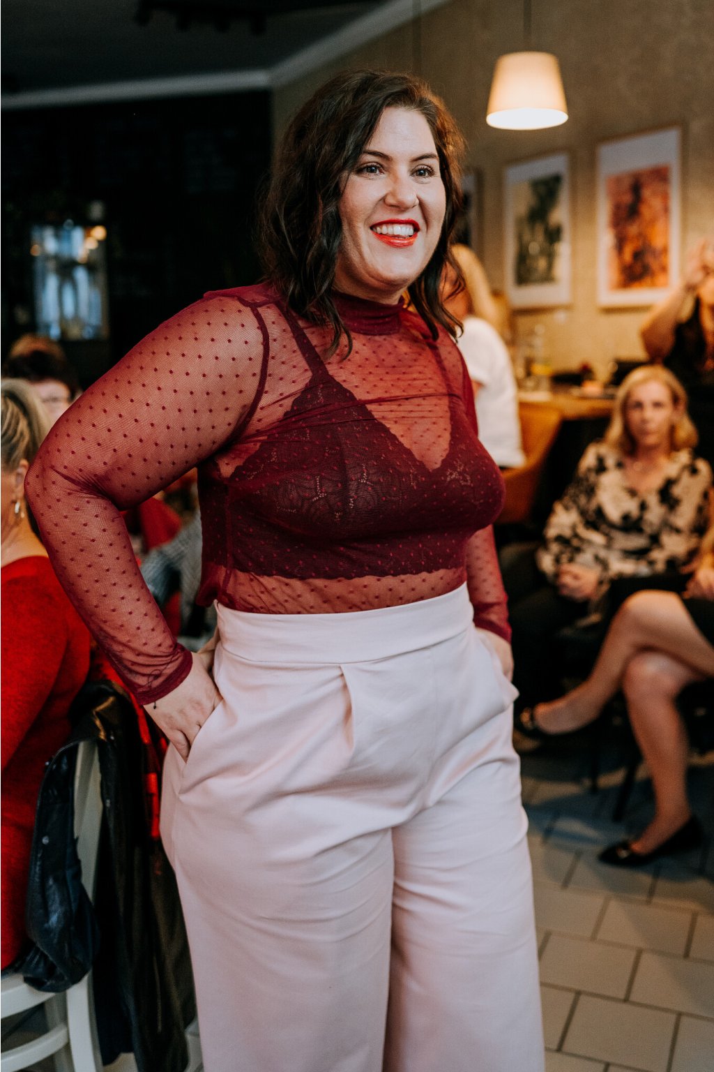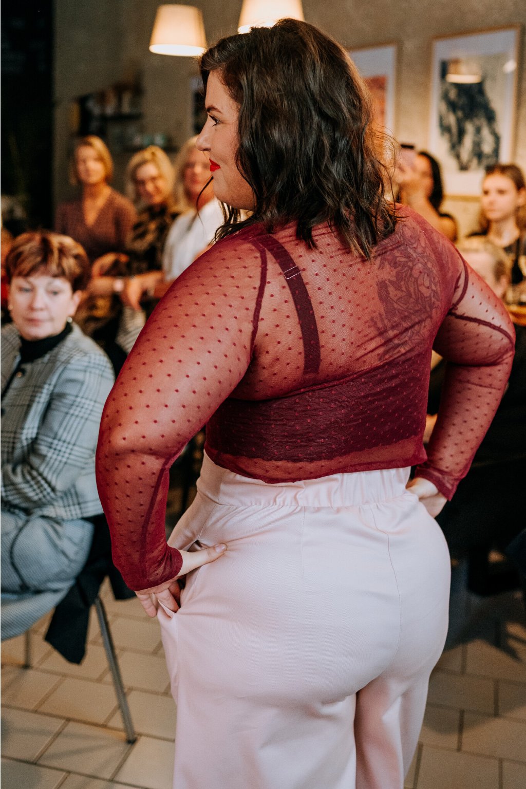 Elegantní slušivé tričko z jemné puntikaté krajky.
